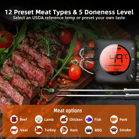 Meat Thermometer Wireless Probe Bluetooth Digital Food Thermometer LCD App
