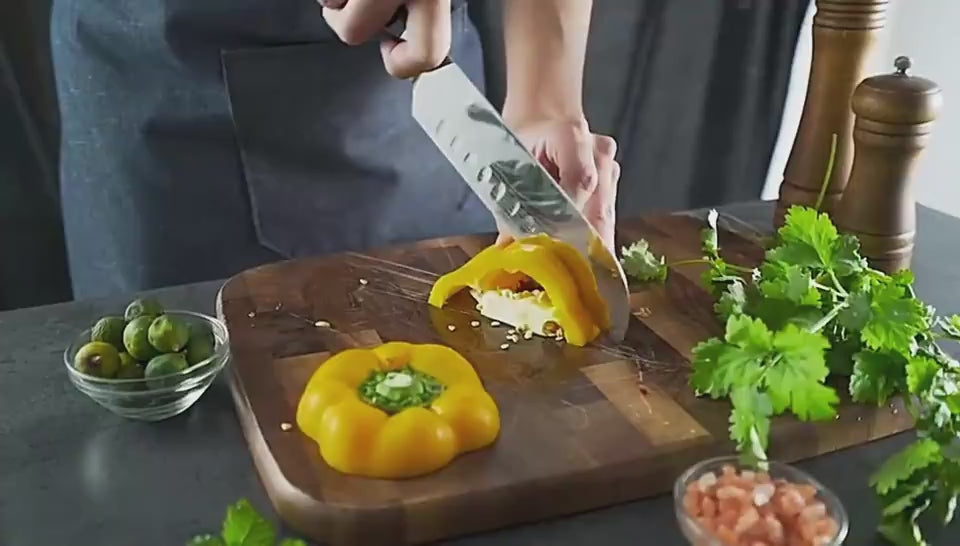 This knife set solves common problems such as dull blades, uneven cuts, and lack of essential kitchen knives. Its comprehensive design ensures that you have the right knife for every task, improving efficiency, safety, and precision in the kitchen.